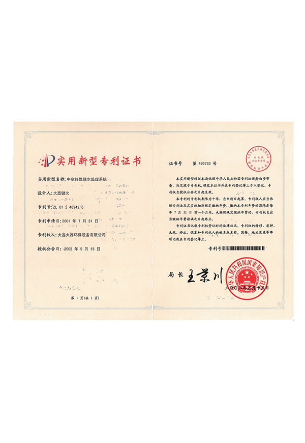 • 引进“三菱丽阳株式会社”中空纤维超滤膜技术并开始生产,利用中空纤维超滤膜,进行污水处理和中水回用,开展了公司多元化经营,专业化发展的新局面。