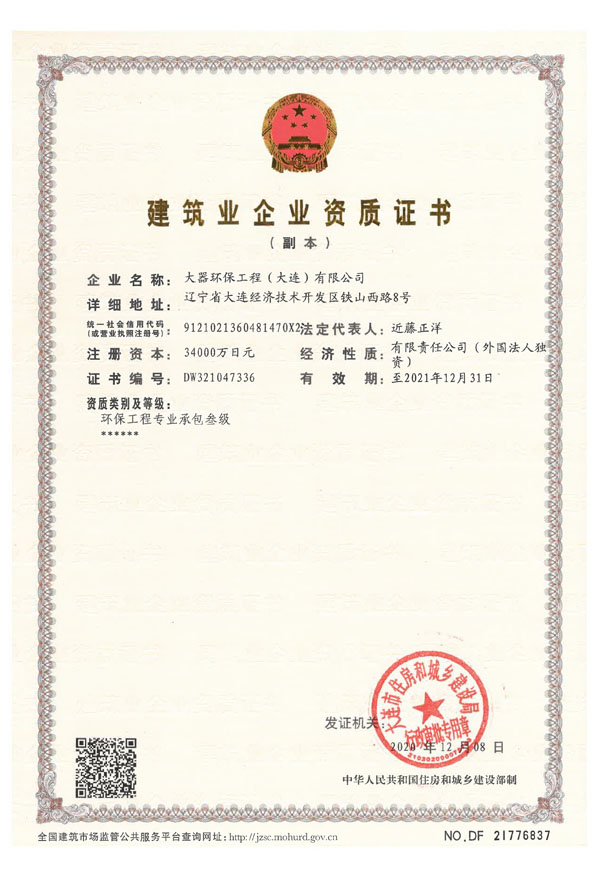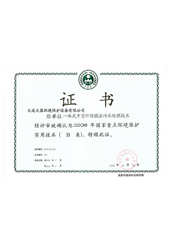 • 企业转型,“大连大器环保设备有限公司”更名为“800cc全讯白菜网”。FRP999策略白菜手机论坛全讯导航及相关零部件生产停止,开始生产销售环保装置及环保工程的设计施工与日常维护管理。掀起了中国的污水处理工程新开端。