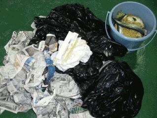 与能吸收水分的纸、木屑等一起处理的话,可转化为粉末状物质